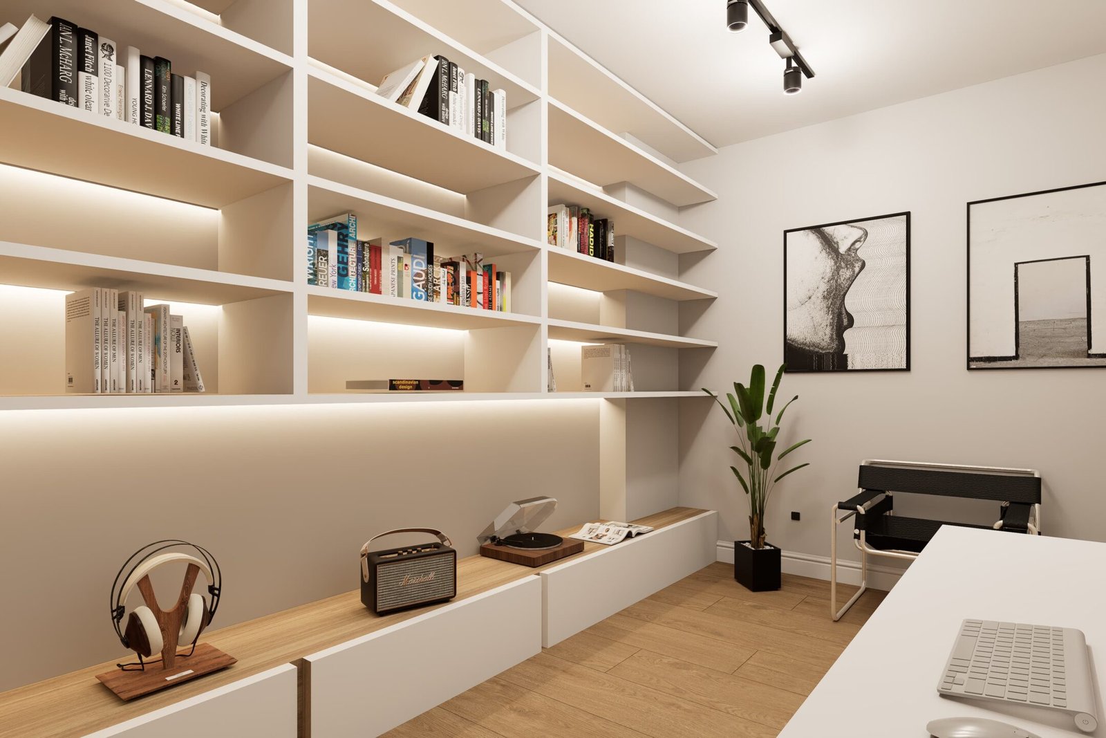 Conceptualizar un espacio en un home office único es esencial para cualquier compositor o profesional creativo. En nuestro enfoque de interiorismo y reformas, nos aseguramos de entender la filosofía y el proceso de trabajo del cliente para crear un ambiente que no solo sea estéticamente atractivo, sino también funcional. Conociendo sus necesidades y su manera de trabajar, logramos diseñar un espacio donde la creatividad fluye de forma natural, optimizando la comodidad y el rendimiento.
