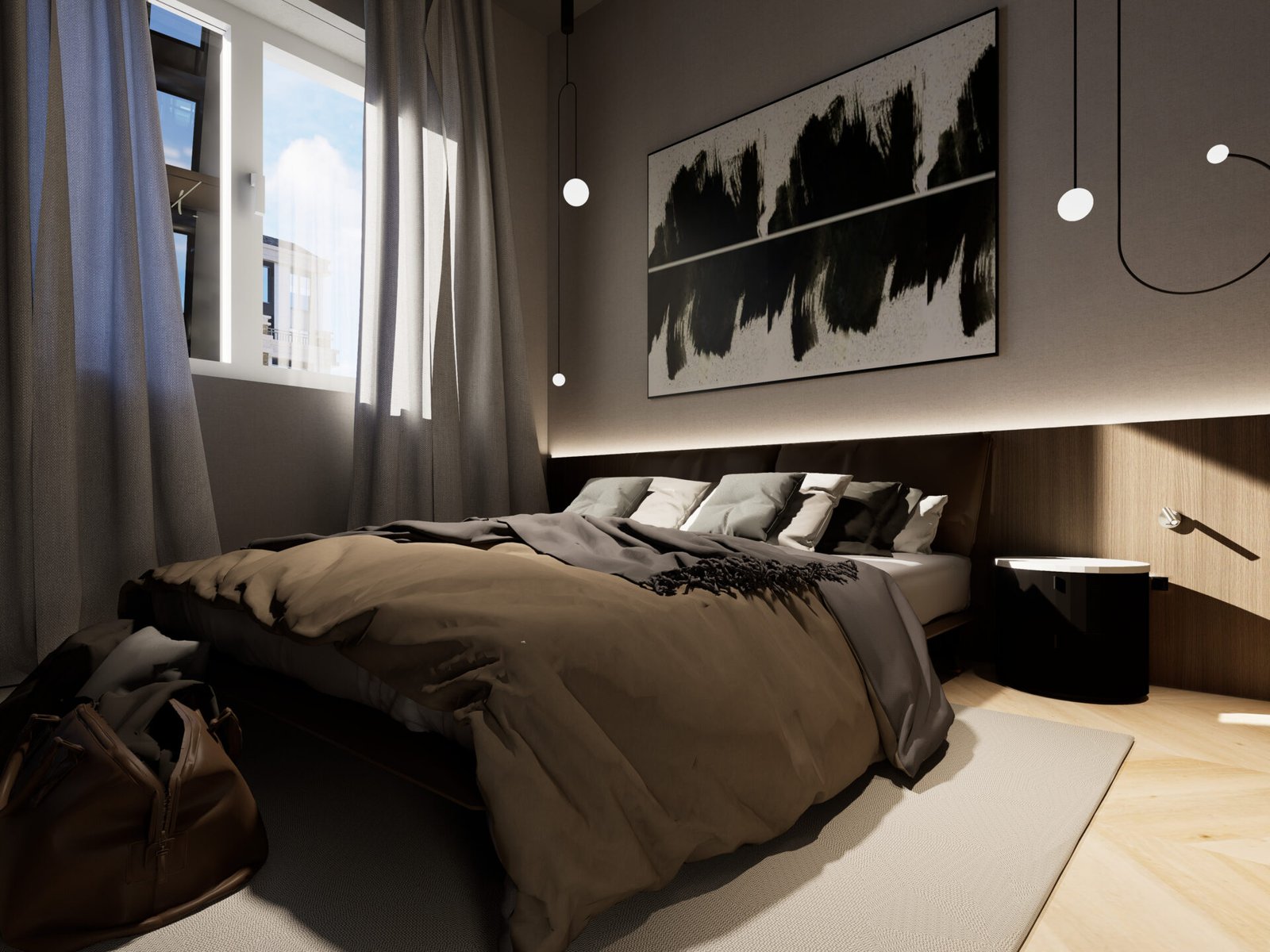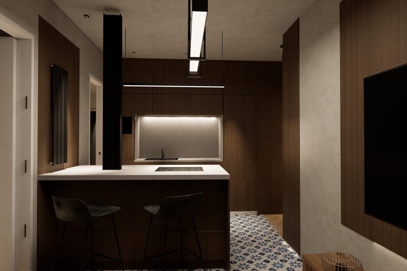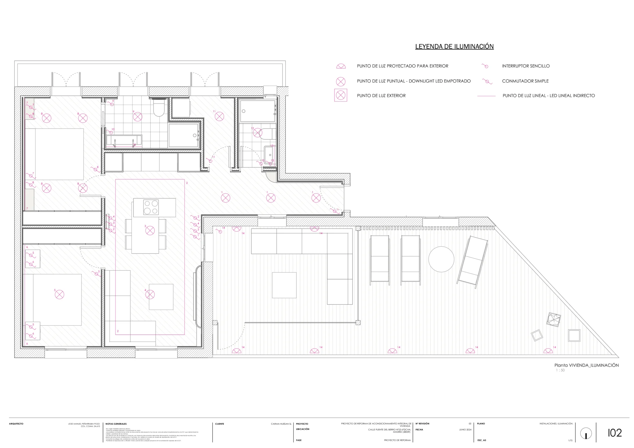 Este exclusivo ático en el Barrio de Salamanca, junto al WiZink Center, ha sido transformado en un espacio sofisticado donde la iluminación juega un papel clave en el diseño. La integración de foseados en el techo y panelados con rasantes LED crea una atmósfera moderna y elegante desde la entrada. La zona social, diseñada para 2 o 3 personas, equilibra confort y funcionalidad, con una cocina integrada que destaca por su isla central y vinotecas empotradas, ideal para disfrutar de momentos únicos en la terraza exterior.