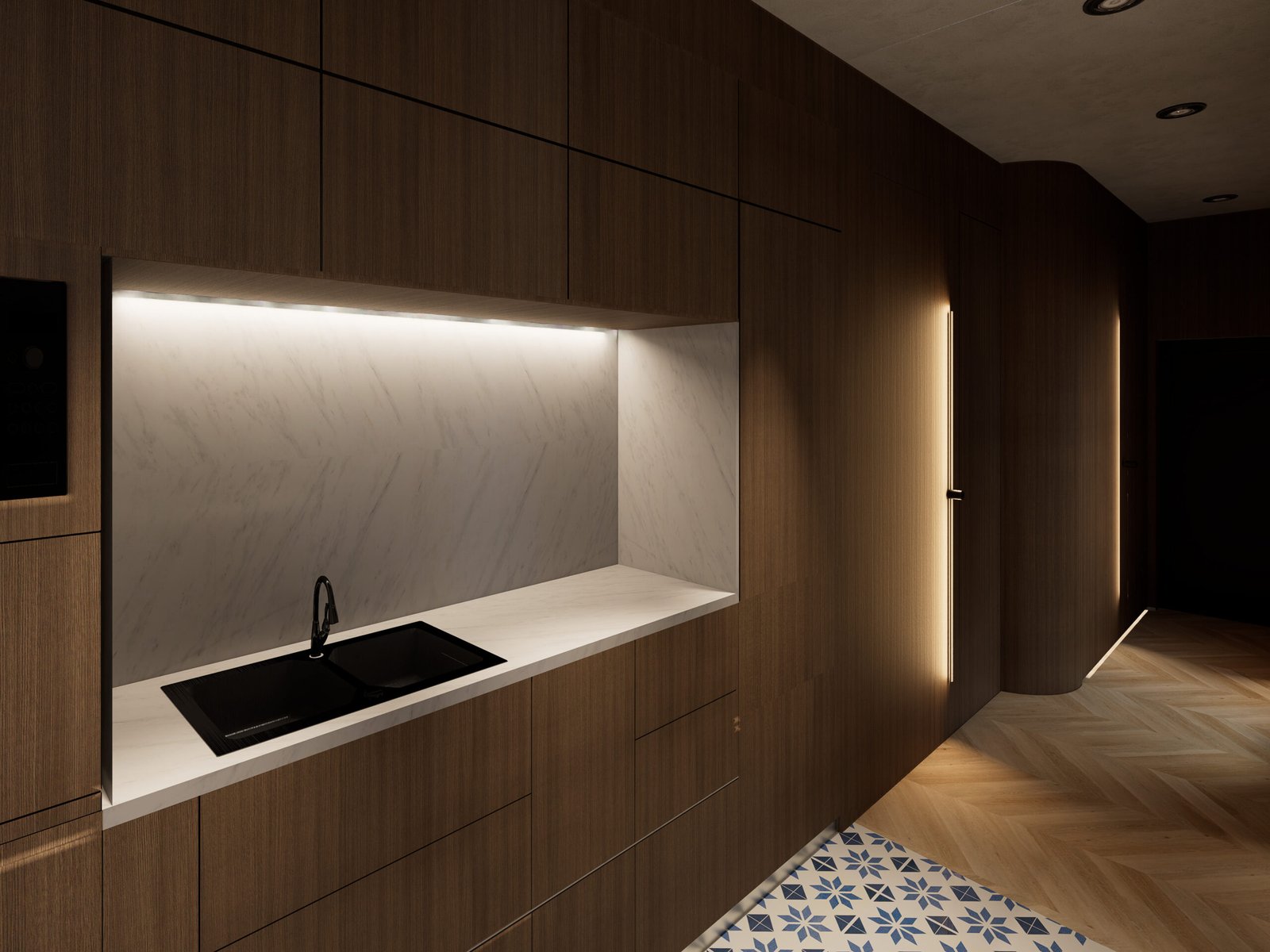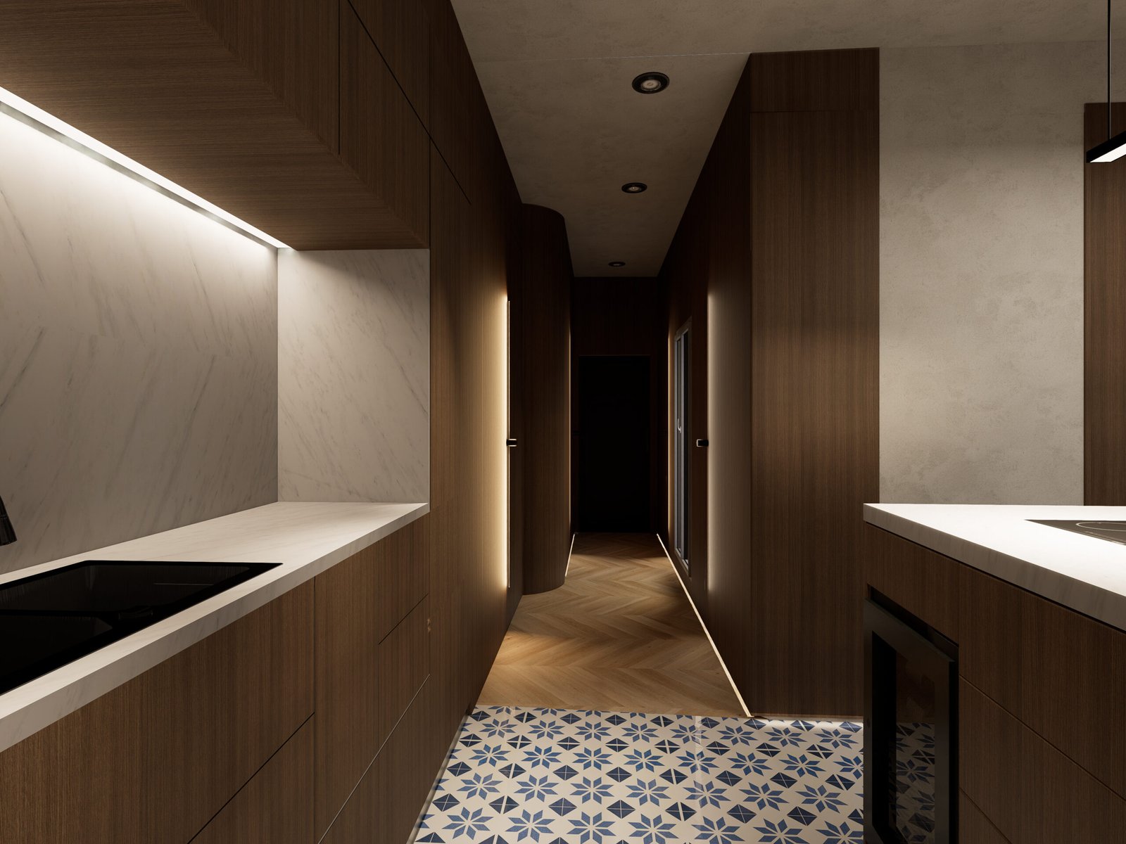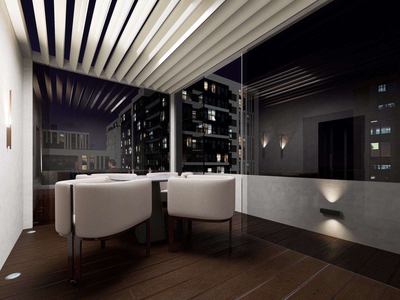 Este exclusivo ático en el Barrio de Salamanca, junto al WiZink Center, ha sido transformado en un espacio sofisticado donde la iluminación juega un papel clave en el diseño. La integración de foseados en el techo y panelados con rasantes LED crea una atmósfera moderna y elegante desde la entrada. La zona social, diseñada para 2 o 3 personas, equilibra confort y funcionalidad, con una cocina integrada que destaca por su isla central y vinotecas empotradas, ideal para disfrutar de momentos únicos en la terraza exterior.