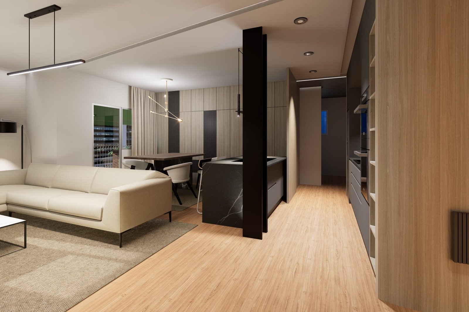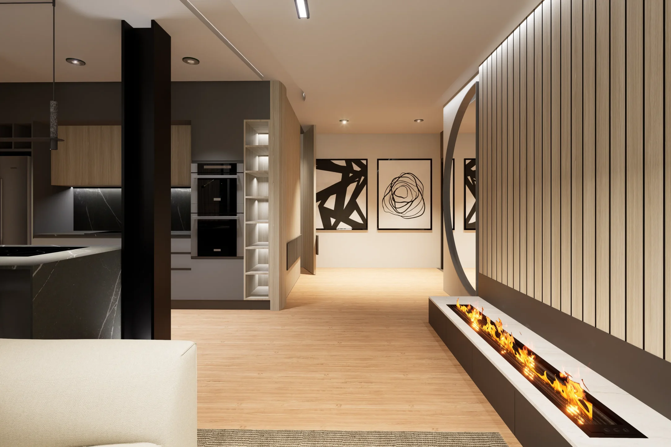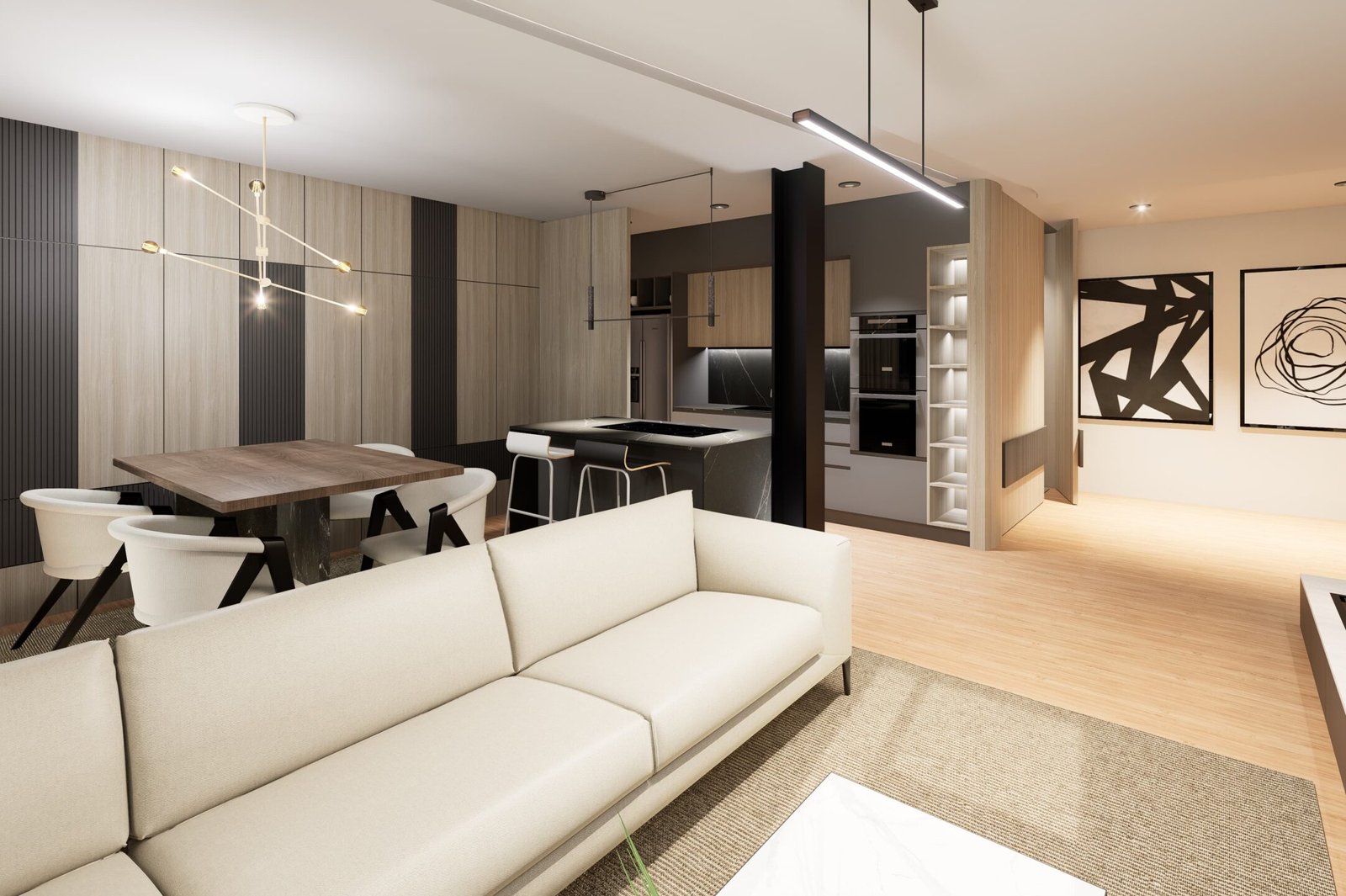 El diseño fluye hacia el resto de la vivienda con naturalidad, generando continuidad visual, amplitud y sofisticación. La combinación de tradición y modernidad crea una atmósfera serena, donde cada elemento tiene propósito y presencia.
