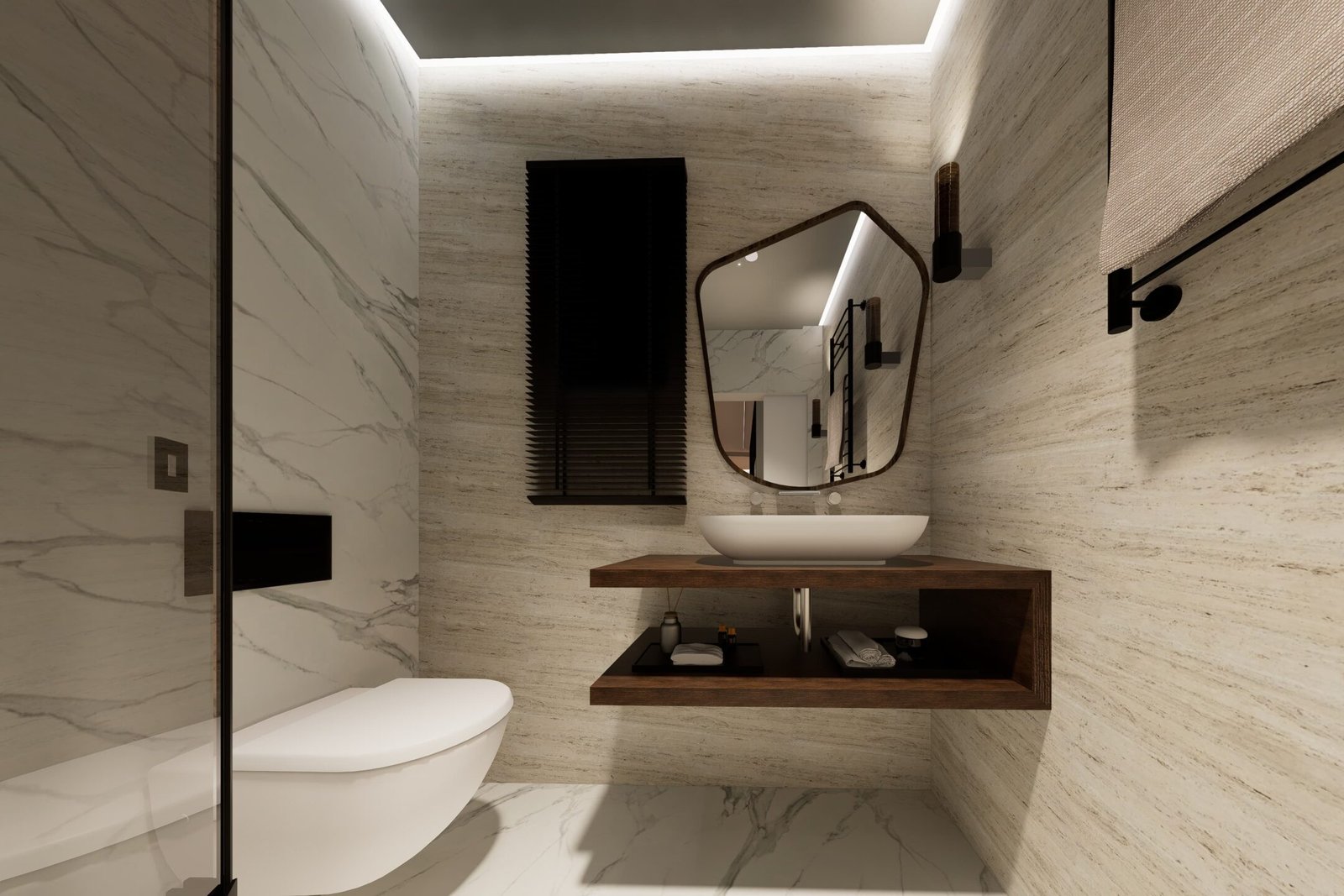 Los materiales seleccionados —madera, piedra y detalles metálicos— dialogan con la arquitectura castiza de Madrid, mientras que la iluminación estratégica y el mobiliario a medida aportan una estética actual.